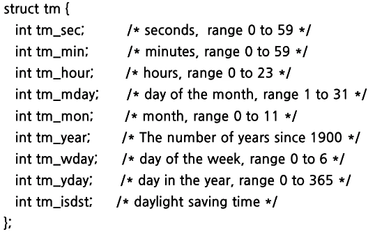 struct tm: 날짜, 시간 처리 구조체