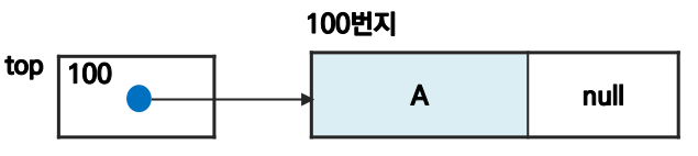 - 스택 원소의 순서: 노드의 링크 포인터로 연결