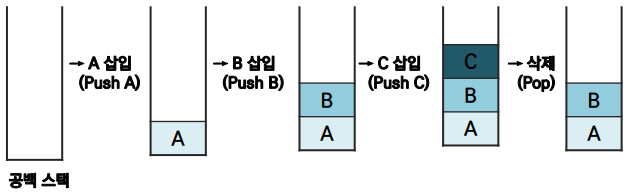 - 스택에서의 원소 삽입/삭제 과정
