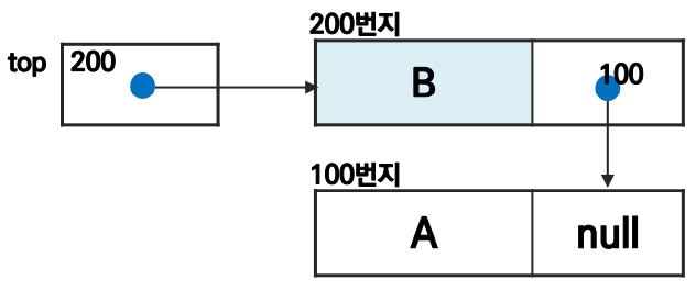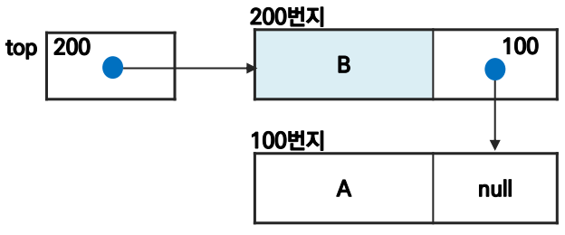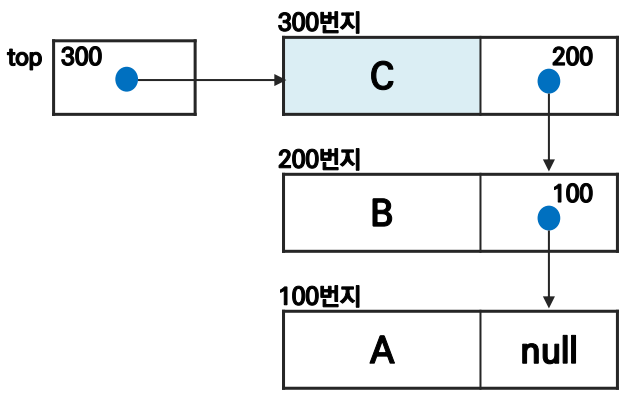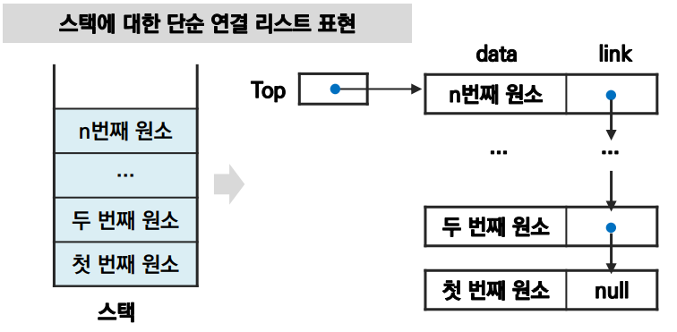 - 스택 원소의 순서: 노드의 링크 포인터로 연결