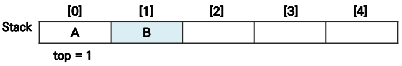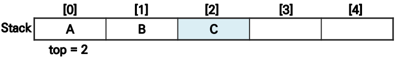 ▪ 스택이 공백 스택이 아니라면 top이 가리키는 원소를 먼저 반환