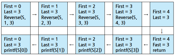 void Reverse(char S[ ], int Size) // → 호출 함수로 되돌아 감