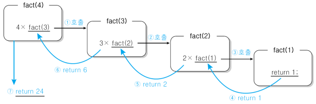 ▪ Factorial 함수에서 n=4인 경우의 실행