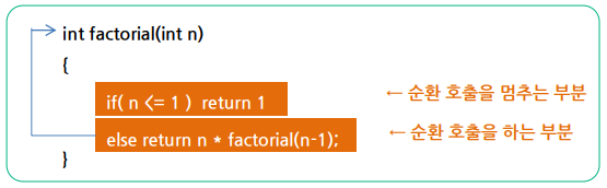 ▪ 순환 알고리즘은 다음과 같은 부분들을 포함함