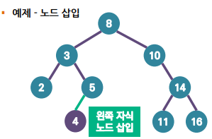이 때 탐색 실패가 결정된 위치, 즉 왼쪽 자식 노드의 위치가 삽입 위치가 됨