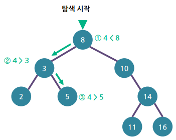 => 루트 노드의 오른쪽 서브 트리에 대해서 탐색 연산 수행