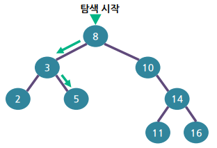 => 루트 노드의 왼쪽 서브 트리에 대해서 탐색 연산 수행