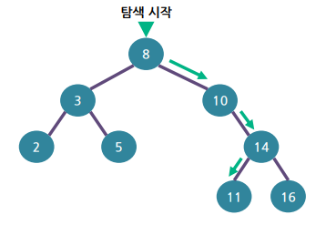 => 루트 노드의 오른쪽 서브 트리에 대해서 탐색 연산 수행