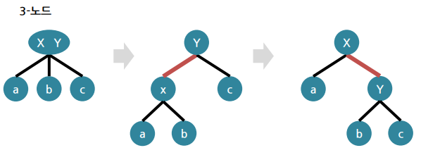 ▪ 3-노드는 왼쪽 또는 오른쪽 키를 루트로 하는 이진 트리로 변경 → 따라서 트리 모양이 유일하지는 않음