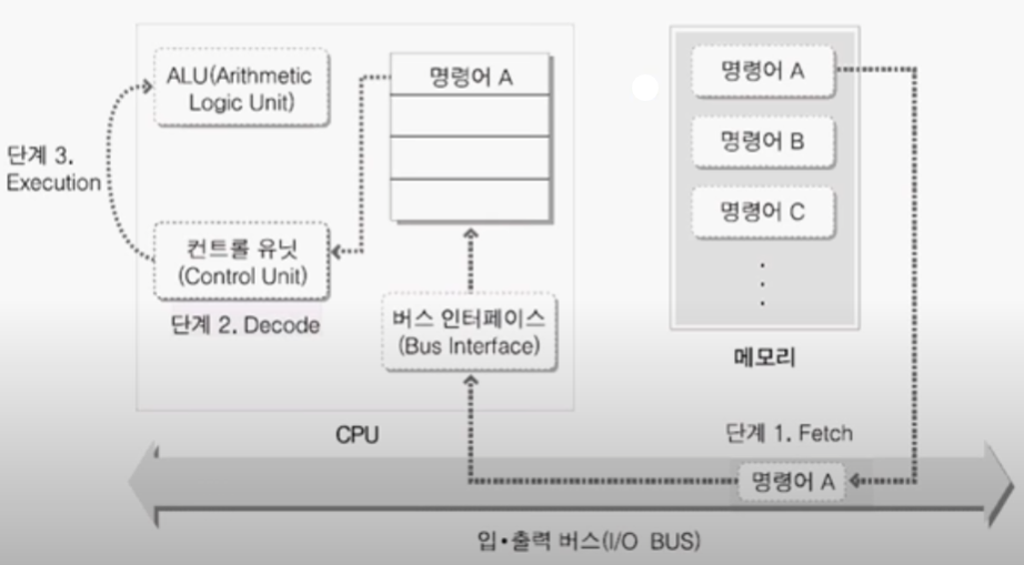 : 명령어는 메모리에 저장이 되어 CPU에 의해 Fetch->Decode->Execution 되어야 한다.