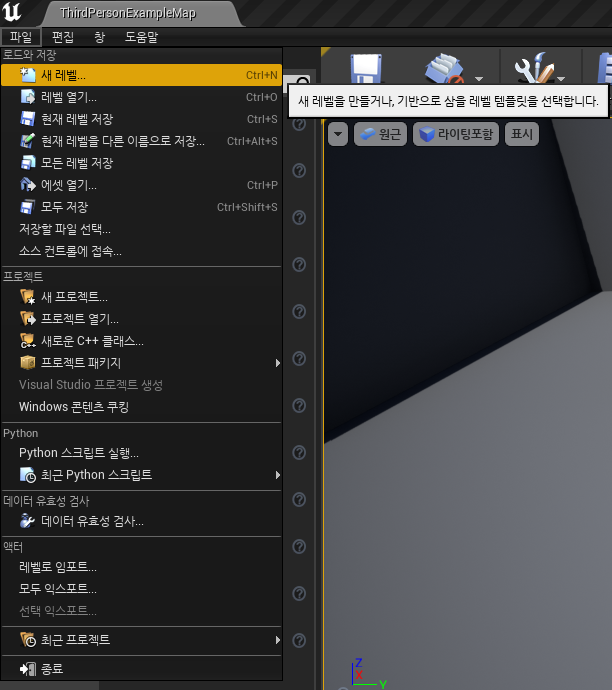- Map은 파일-새 레벨을 선택하여 새로 생성하거나 다른 이름으로 저장하여 생성할 수 있다.