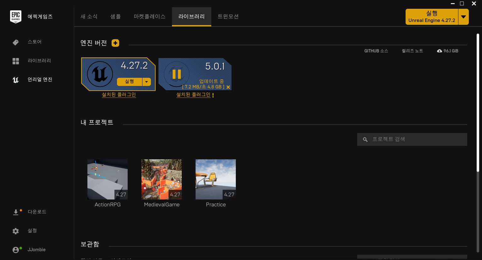 - 유니티의 UnityHub와 같이 에픽게임즈 런처를 통해 엔진을 설치하고 프로젝트를 생성할 수 있다.