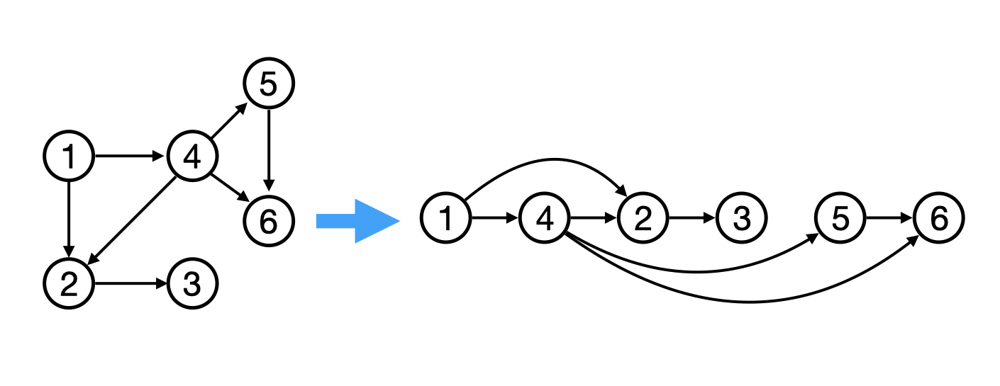 - DAG의 정점들을 순서화하기 위한 정렬, 즉 DAG 위에서만 동작 가능